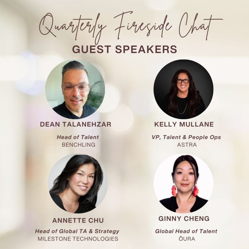 Talent Collective (we swear we came up with the names independently 🤭 ) is hosting a quarterly fireside chat on Tuesday, October 17th, 2023 from 5:00pm - 8:00pm (PDT) at Benchling’s office in SF. Tickets and lineup here or clicking on the image 👇